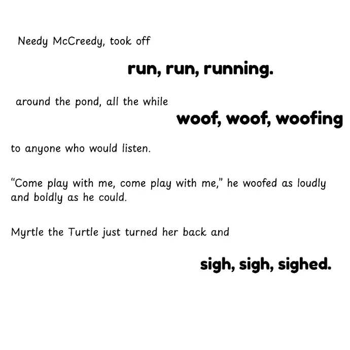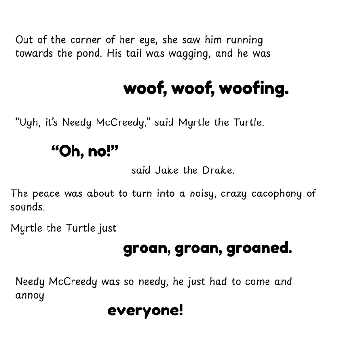 Needy McCreedy is a little dog with a big need for attention! He's eager to play by the pond, but when the others aren't interested, his feelings get hurt - until kind-hearted Gently McBently steps in to help everyone understand the importance of being kind.